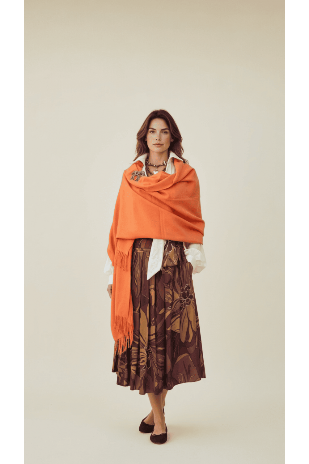 Портокаловиот шал Casa Gracian е изработен за моментите кога едноставноста зборува најгласно. Неговата топла, сончева нијанса додава длабочина и мек контраст на неутрални и темни тонови, додека нежната текстура го обвива телото со чувство на природна удобност.
