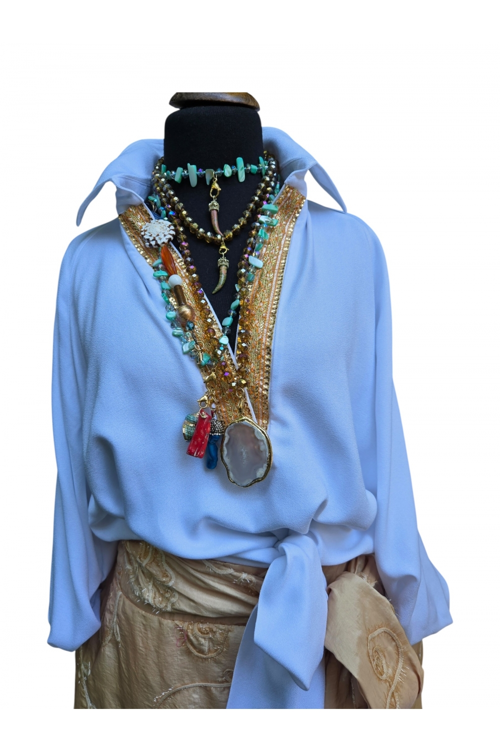 Оваа кошула изработена од 100% памук со својот медитерански шарм. Долгите ракави со благ пад и врзувањето во предниот дел создаваат опуштен, но софистициран изглед. Комбинирајте ја со здолништа или ленени панталони за раскошен летен изглед/.