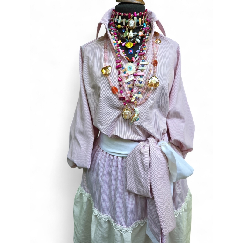 Оваа кошула е дефиниција за тивка елеганција. Изработена од висококвалитетен памук со фина ригаста текстура, во нијанса на бисерно розово.Совршена е за стилско комбинирање со здолништа и ленени панталони.